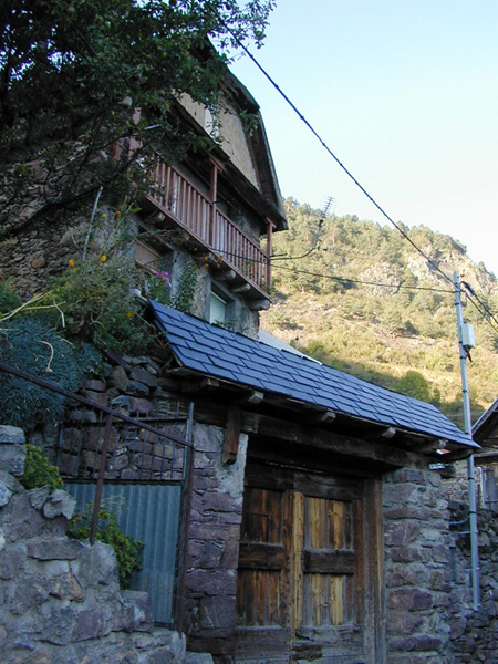 Presenta la estructura (tres plantas más falsa bajo cubierta) y la composición de la fachada características del núcleo de Gistaín (presentes también, por ejemplo, en casa Ambrosio y casa Chuplana).