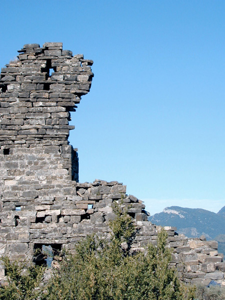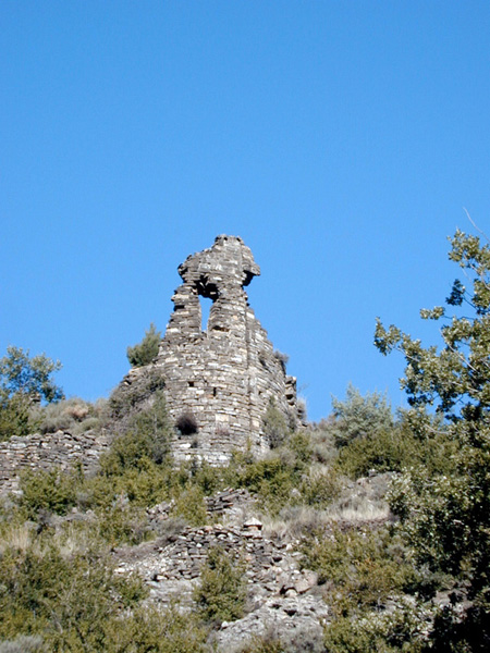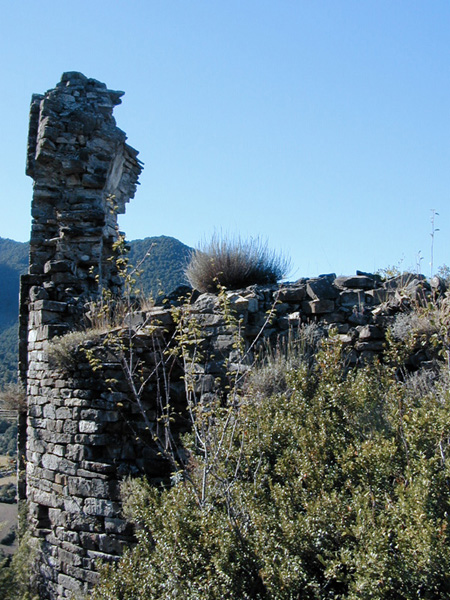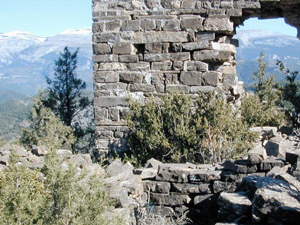 Situada sobre un escarpado cerro, unos pocos metros más abajo de la cima, con una amplia panorámica del valle del Cinca. Según la tradición, en esa peña hubo un castillo y tanto la ubicación como la toponimia parecen confirmarlo: bajo ese cerro, hacia el O, hay una pardina que se llama Socastiello. En ese caso, la ermita habría estado vinculada en sus orígenes a la fortificación, como es habitual en numerosos castillos de Sobrarbe y Ribagorza: Fantova o Pano, por ceñirnos al estilo de esta iglesia. Una inspección de la cumbre no arrojó ningún indicio material de la existencia de este castillo.