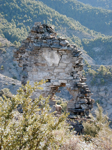 Manuel García Guatas recoge la tradición de que este emplazamiento se encontraba en las proximidades de un importante camino que, procedente de San Victorián y bordeando la Peña Montañesa, se dirigía, por la margen izquierda del Cinca, por Badaín, hacia Bielsa y Chistau.