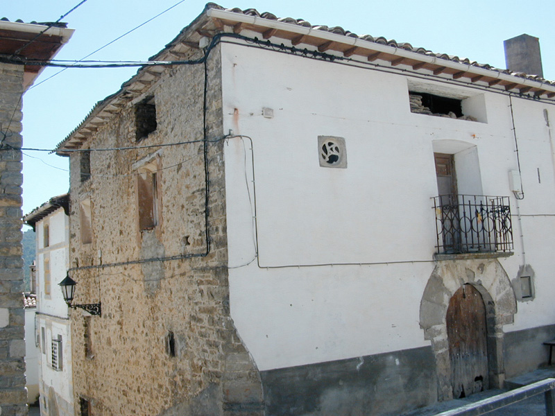 Es una casa realizada en mampostería bastante regular, reforzada con sillar en las esquinas, y cubierta con teja a cuatro aguas, prolongadas en aleros de poco vuelo sobre tablas apoyadas en canes de madera labrada. Está encalada en su fachada principal y parcialmente revocada en la lateral. La puerta es en arco de medio punto, de dovelas gruesas y no excesivamente largas, que apoyan en doble salmer y jambas monolíticas, solución idéntica a la de la puerta de casa Latorre. Otros vanos destacados son los de la falsa, rectangular el de la fachada principal y cuadrados en la lateral. El elemento más llamativo es un pequeño vano, a modo de óculo o rosetón, situado en la fachada principal, a la altura de la primera planta. Tiene forma circular y en su interior hay una decoración calada en tracería curva. No parece ser original de la casa, sino proceder de un edificio religioso.
