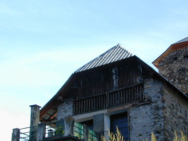 La casa es una gran construcción de planta rectangular, con tres pisos más espacio bajo cubierta. Está realizada en mampostería revocada y cubre a dos aguas paralelas a la fachada, con el característico faldón protector achaflanando la cubierta por uno de sus lados cortos. En la planta baja presenta varias puertas adinteladas, en la principal de las cuales aparece grabada en el dintel la fecha de 1846, y ventanas de las mismas características en la primera planta. Destaca, en la segunda, una larga galería corrida a lo largo de toda la fachada, con balaustrada de madera y pies derechos también de madera que sostienen el vuelo del tejado. La falsa abre al exterior por una balconada, actualmente cerrada con tablas, que presentaba una balaustrada en uno de los extremos cortos.