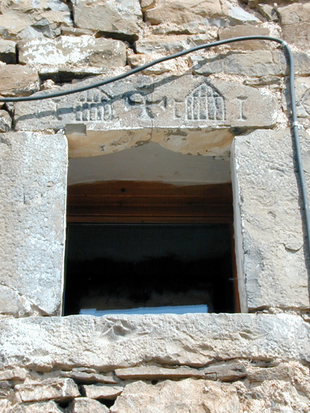 Es un edificio muy modificado tras su construcción original, ya que fue rebajado (contando ahora con dos plantas y pequeño espacio bajo cubiertas) y se alteraron las fachadas con la abundante apertura de vanos. Concentra sus elementos de interés en las fachadas trasera (horno de pan, del que se ha hecho ficha individual) y principal. Esta está orientada al S. Los principales elementos son: la puerta de acceso, adintelada con bloque monolítico en cuyo frente aparece una cruz de malta en medio relieve sobre fondo rehundido; a su lado hay una pequeña ventana en el frente de cuyo dintel consta la inscripción "A 1602"; en la planta principal, ventana adintelada con bloque monolítico, en cuyo frente hay una cruz de malta flanqueada por relieves simétricos, que representan una casa esquemática cruzada por líneas verticales y en la parte exterior el signo "I".
