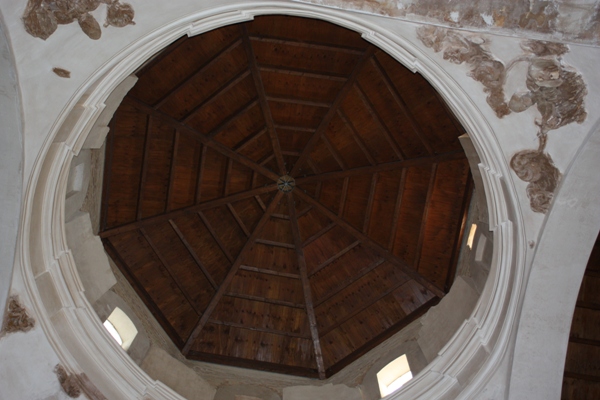 El primer tramo de las naves central y laterales conforman el crucero, de mayor altura que el resto de los tramos. Estaba rematado con una gran cúpula sobre pechinas en las que se distinguen altorrelieves con los padres de la Iglesia, con un tambor con pequeñas ventanas, al exterior octagonal. La desaparecida cúpula ha sido sustituida en el proceso de restauración por una cubierta octogonal de madera.