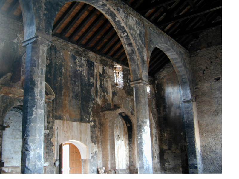 Se clausuró la nave sur, levantando un grueso tabique en el que quedaron embebebidos los pilares octogonales.