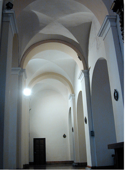 Las capillas laterales tienen escaso fondo, embocadura en arco de medio punto y planta rectangular cubierta con bóvedas de medio cañón.