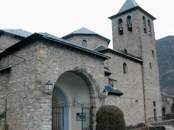 Tiene ante ella un espacio ajardinado y, en la zona de la cabecera, la antigua casa abadía, donde se encuentra instalado el museo etnológico y pueden contemplarse pinturas murales del siglo XVI.