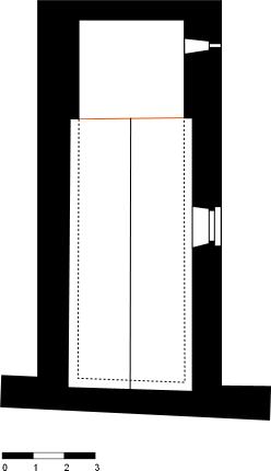 El pavimento es de grandes losas. Un poyo de obra recorre los muros interiores.
