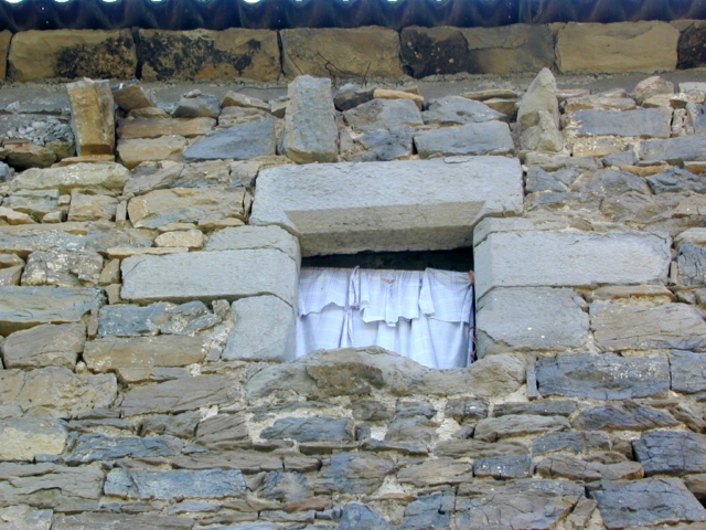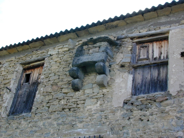 Sobre éste pueden verse algunos de los canes de piedra que sostenían el alero original, sustituido ahora por uno de losas al ser recrecido el muro unos 20 cm.