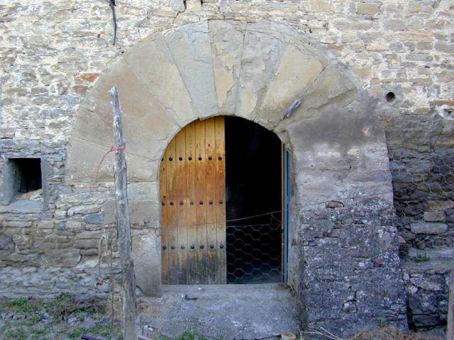 Entre ellos destaca la puerta, situada en la fachada oeste, en arco de medio punto de dovelas muy largas y estrechas que apea en jambas de sillares verticales y horizontales alternos, una de las cuales ha sido cubierta por un pequeño contrafuerte de refuerzo.