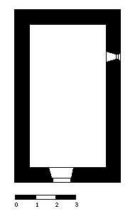 Tiene planta rectangular, abovedada con medio cañón, con el testero recto orientado al noreste.