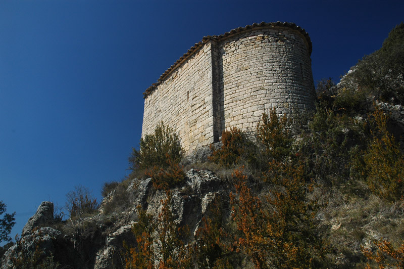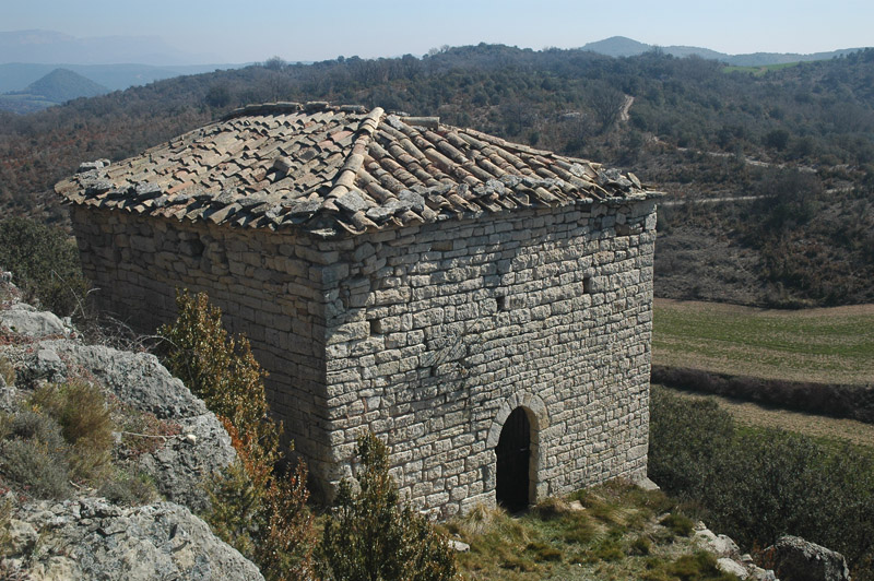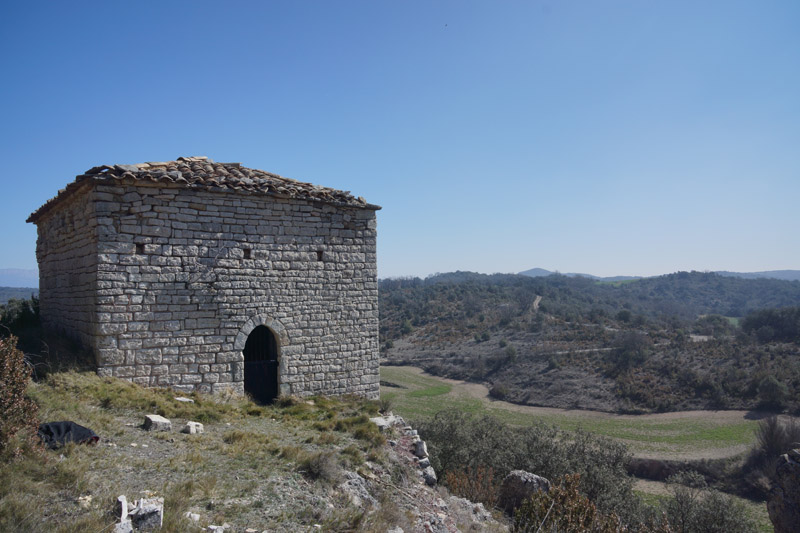 La ermita se encuentra en la cima de un cerro, en el que también subsisten algunos restos poco visibles de una fortificación y un despoblado medievales. Algunos autores identifican este lugar con el castillo de Cabestany, conquistado a los musulmanes en la segunda mitad del siglo XI por el vizconde de Ager Arnau Mir de Tost. Cabestany aparece documentado en varias ocasiones hasta el siglo XV.