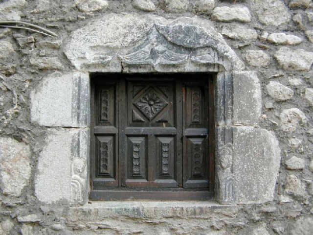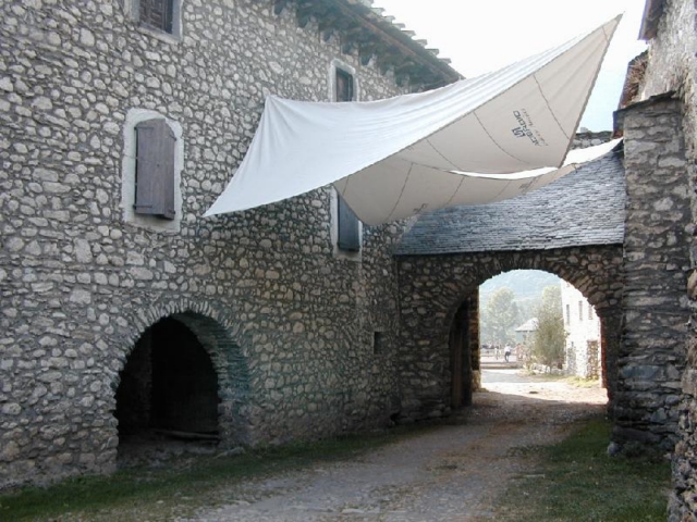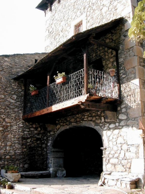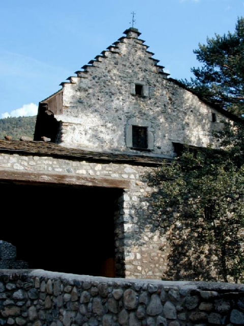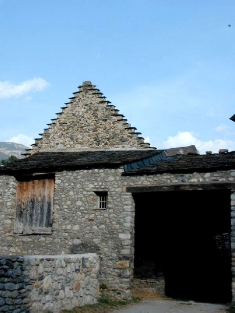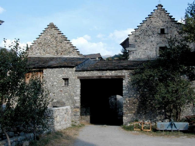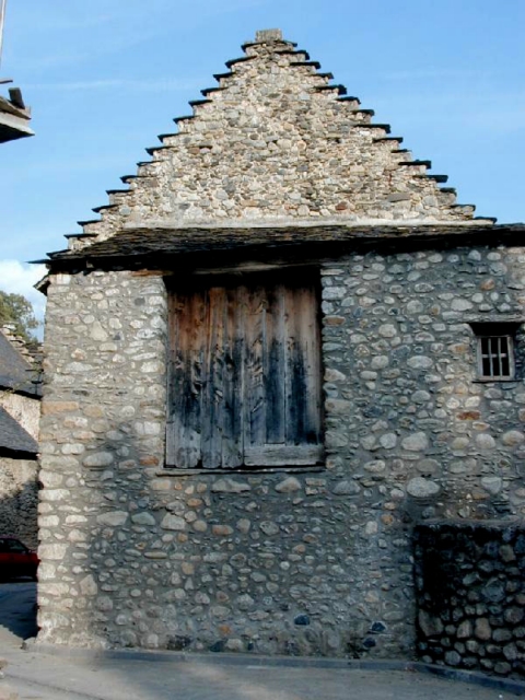Los hastiales de la casa son escalonados ("penals" en el dialecto del valle) y lo mismo que en otras casas los muros han sido repicados dejando el aparejo de mampostería a la vista. Los tejados son de pizarra y en la fachada norte descansa sobre un alero con ménsulas de madera.