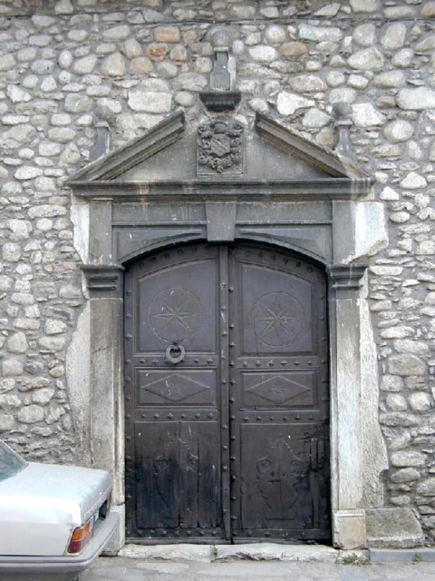 La puerta, de similar diseño a la de la casa Sebastián, es en arco rebajado con pilastras y capiteles imposta que sostienen un frontón triangular partido, rematado por tres pináculos con bolas. Las puertas de algunas casas conservan llamadores-tiradores en hierro de forja y en forma de asa con decoración incisa de motivos geométricos.
