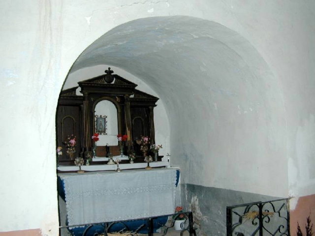 Construcción de planta muy irregular al tratar de adaptarse a una plataforma que queda en el lado sur del barranco (orilla izquierda). Tiene cabecera recta orientada al E y cubierta con bóceda de cañón. En su costado sur hay adosada una sacristía. La cabecera está precedida por un espacio trapezoidal, con cubierta de medio cañón encamonada, de poca longitud y desproporcionada anchura , en cuyo lado N se abre la puerta de ingreso. En el interior hay una vitrina donde se exponen varios exvotos.