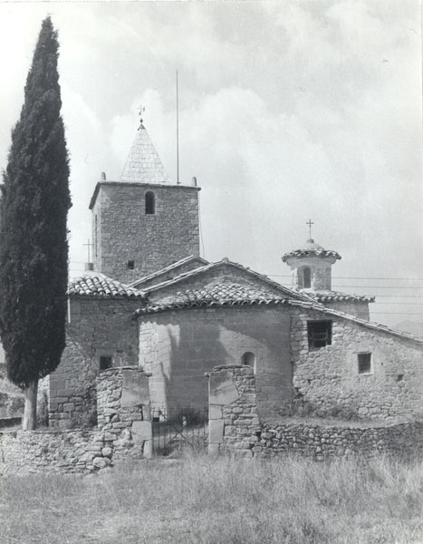 Es un edificio románico en origen, muy modificado por una reconstrucción en el siglo XVI y nuevos añadidos en los siglos XVII y XIX. En origen era una iglesia de una nave con ábside semicircular orientado al este, pero se le añadieron capillas laterales a modo de crucero, una sacristía en el ángulo noreste (eliminada en la reciente restauración) y una torre campanario, situada a los pies de la iglesia, cuya parte inferior se abre a modo de pórtico que alberga en su interior la puerta de acceso.