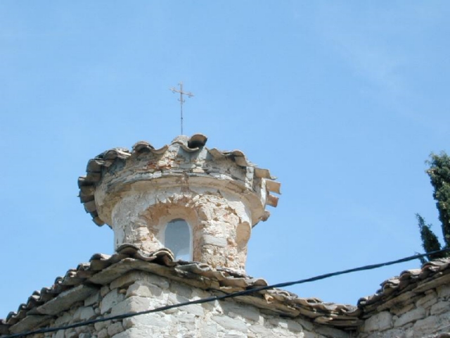Al exterior resulta evidente también esta heterogeneidad en la suma poco armoniosa de diversos volúmenes, donde destacan el semicírculo del ábside y la linterna de la capilla barroca, de planta circular y cuatro vanos de medio punto, realizada en mampostería revocada y con cubierta cónica de tejas.