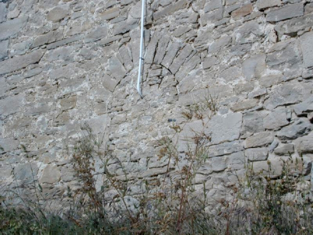 Esta heterogeneidad constructiva se manifiesta en los propios materiales de construcción de los paramentos: sillar muy cuidado, de grandes dimensiones, en la cabecera; sillar ligeramente más tosco en la parte inferior de la capilla barroca del lado norte, y mampostería de características muy variadas en el resto del edificio.
