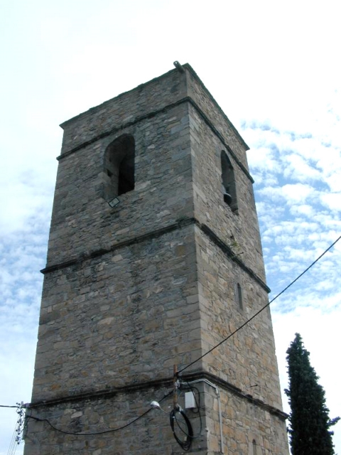 La torre es una construcción añadida a la cabecera, sin comunicación directa con el interior del templo. Tiene planta cuadrada, con tres cuerpos separados por impostas más un pequeño cuerpo de remate también cuadrangular. En el primer y segundo piso, por el lado sur, hay ventanas aspilleradas. En cada una de las caras del último piso se abren sendos vanos de medio punto para campanas.