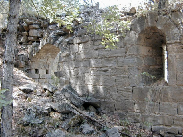 Se encuentra enclavada en una ladera muy pendiente, con una densa masa forestal de repoblación, que no solo dificulta la localización y acceso al conjunto, sino que ha afectado a la conservación del edificio, al haber crecido árboles tanto en sus inmediaciones como en su interior.