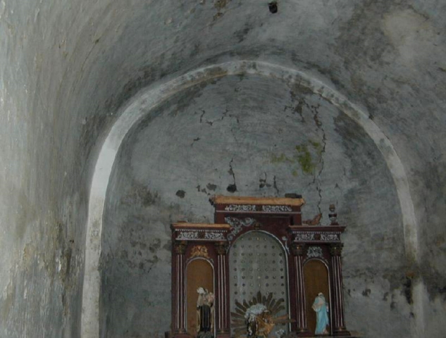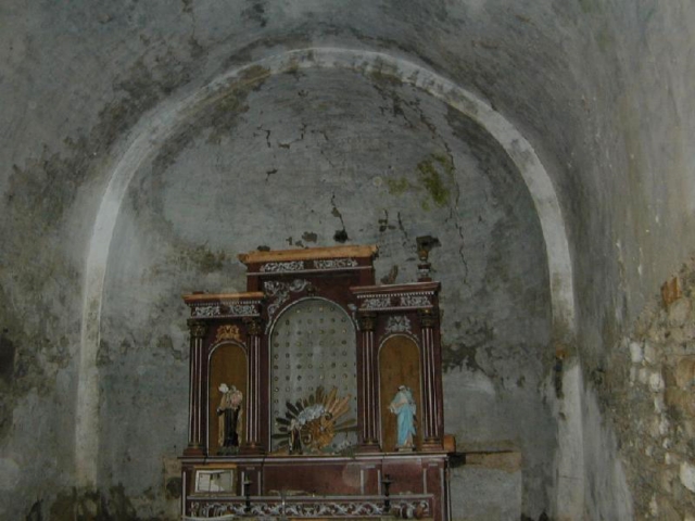 Aparte de las ventanas de los pies, la iluminación se completa con óculo a los pies y ventana con arquillo en el lado oeste, junto a la cabecera. Al interior, la nave cubre con bóveda de medio cañón, y de cuarto de esfera, la cabecera. El paramento está enlucido y encalado.