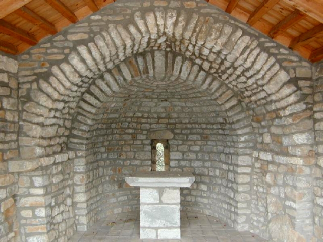 Al interior, el ábside cubre en bóveda de cascarón; está precedido por tramo preabsidial cubierto por tosca bóveda apuntada cuyo arranque está marcado por una línea de imposta. El resto del edificio cubre con viguetas y tablas de madera.