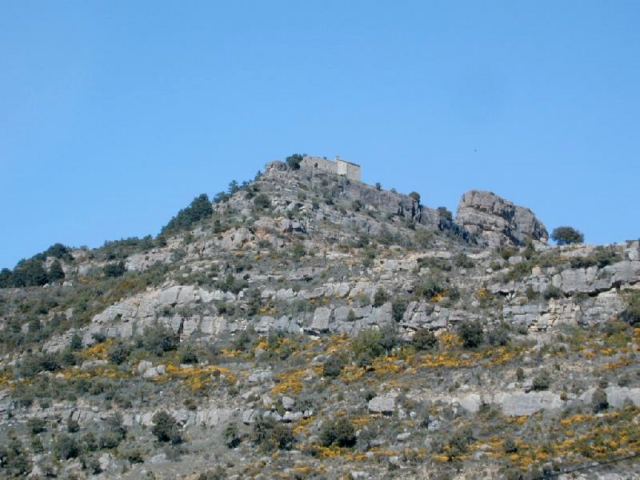 Ubicada en uno de los puntos más elevados de la sierra que cierra por el O el valle del Isábena, se asienta en una estrecha superficie que apenas solo deja espacio para el edificio. Desde este punto se tiene dominio visual de los acantilados que cierran este tramo del Isábena al N, con la Virgen de la Feixa a lo pies, de Roda y del sur del valle, La Puebla...