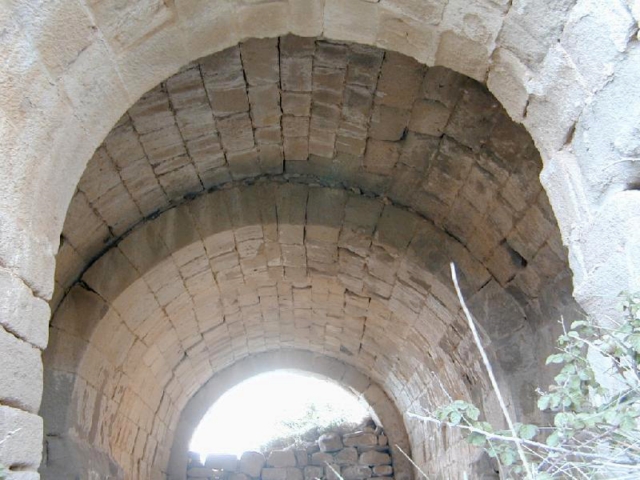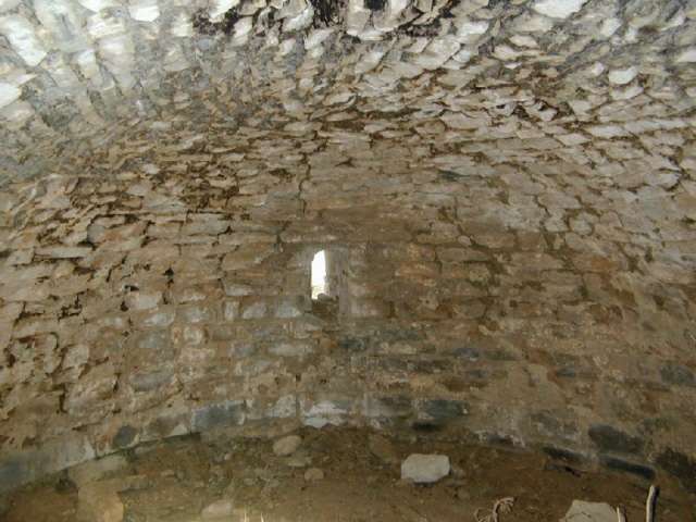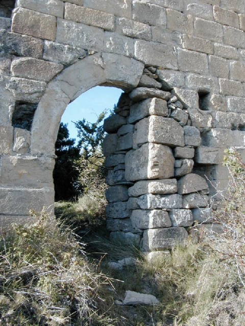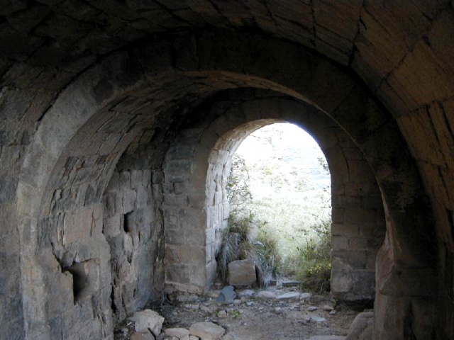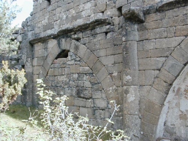 El aparejo es de sillares de buen tamaño, bien cortados y dispuestos en hiladas uniformes. El acceso se realiza por el lado S donde se encuentran dos puertas, las dos de medio punto. La que se halla próxima a los pies es más amplia y se despieza en dovelas pequeñas y casi cuadrangulares; en la otra, cuya mitad E se ha tapiado, las tres dovelas que quedan son de muy poco radio y bastante arco.