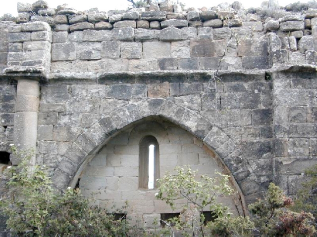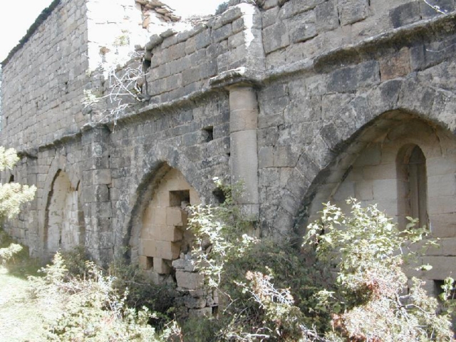 El espacio románico principal, estaba iluminado por 4 vanos de medio punto: dos al sur, uno al E y otro al O. Al interior el muro se articula en 6 tramos divididos por pilastras y columnas de forma alternada. En el interior de cada tramo se dispone un arco apuntado paralelo al muro con función de refuerzo para el sostenimiento de la bóveda. Una línea de imposta marca el inicio de la bóveda.