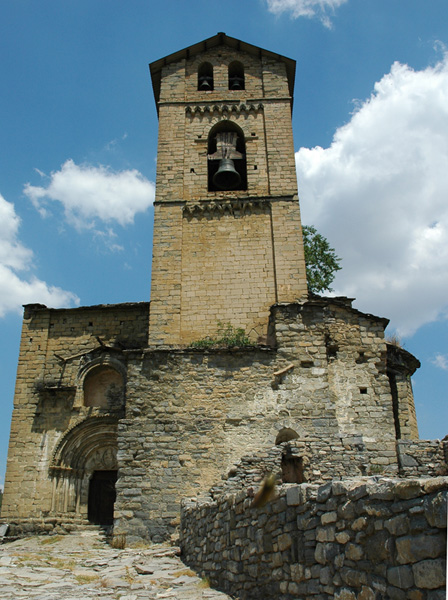 Sin embargo, no parece conservarse ningún resto arquitectónico de dicho edificio, pues la actual iglesia, por sus características, debió de ser edificada algún tiempo después, ya relativamente avanzado el siglo XIII, en un estilo románico que ya empieza a acusar una relativa transición hacia el gótico. Con esta datación parecen concordar tanto la arquitectura del edificio como la decoración escultórica de la portada. Muy poco después se llevarían a cabo el ciclo de pinturas murales descubierto durante la última restauración.