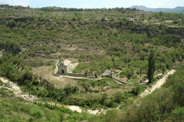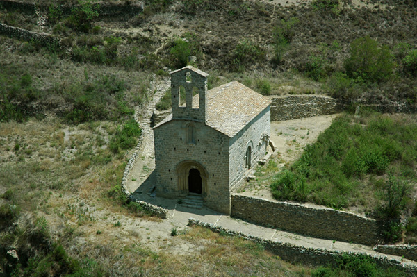 Edificio de planta rectangular y un ábside semicircular que parece añadido más posteriormente, aunque no mucho más. Puesto que en la pared meridional se localiza un auna puerta tabicada, realizada mediante un arco de medio punto. En el muro occidental se abre la puerta de entrada definitiva, formada por cuatro arquivoltas de medio punto y trasdos bocelado. La imposta, labrada con motivos vegetales, esta sostenida por mensulas y capiteles historiados. En ccima de esta portada se localiza, primero una ventana abocinada con doble derrame. Lo mismo que en el ábside. Por encima de esta arranca una espadaña con triple vano. La cubierta es a dos aguas y se realiza mediante un tejado de losas de piedra. Con anterioridad a la restauración poseía un coro en alto. Pero fue desmontado y tras él aparecieron una serie de pinturas murales.