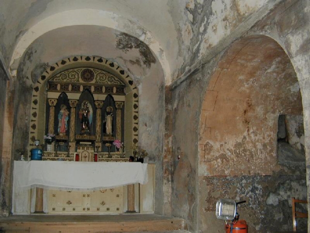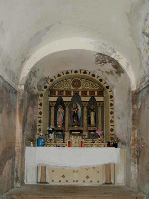 El interior es sencillo. La nave y la capilla se cubren con bóveda de medio cañón y el ábside lo hace con bóveda de horno.