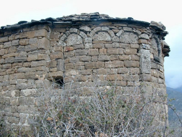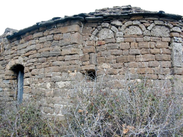 Edifcio de sillarejo bien labrado pero de tamaño irregular, dispuesto en hiladas perfectamente ordenadas. Ha sido recrecido con partes en mampostería.