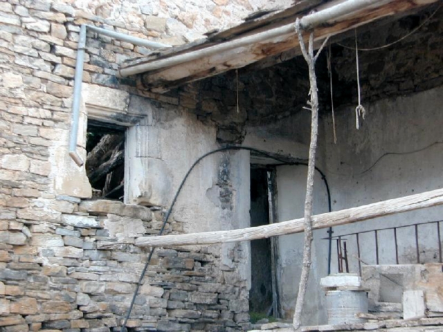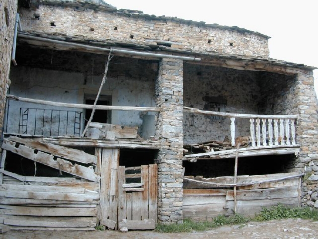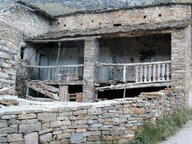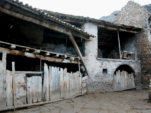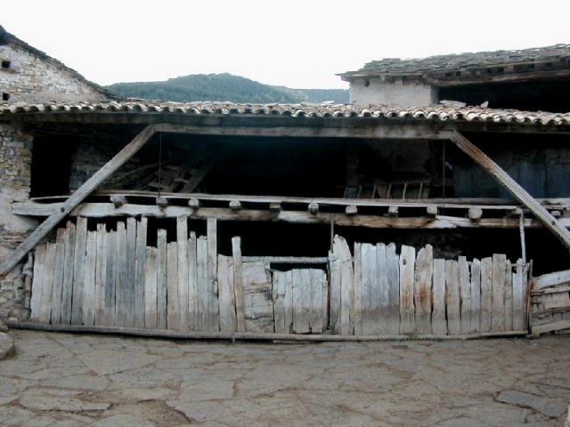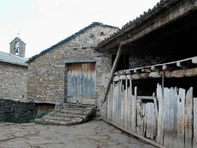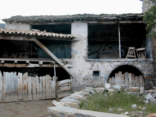 Casa orientada al SE que forma junto con un grupo de edificios auxiliares y la era un conjunto cerrado separado de la calle por una tapia. El edificio de vivienda tiene forma de L con orientación SE. Se halla semiderruido, pero se conserva en el lado sur un porche de dos plantas con una solana en la segunda; además de dos ventanas con dintel, jambas y antepecho de piedra moldurados, en el lado E. Ante la casa se extiende un espacio pavimentado con losas de piedra que cumpliría las funciones de era, corral y patio. Esta espacio cierra al N por la casa, al S, por un pajar en mampostería con cubierta a dos aguas de losa y acceso en gran portón adintelado, al O por la tapia, y al E, por pajar de dos pisos. Este último tiene un pilar central que permite que el frente de la segunda planta quede completamente abierto hacia la era y separa el espacio en dos tramos, estando destinado el más próximo a la vivienda, en la planta baja, a cuadra, por esta razón se encuentra cerrado por un muro y existe un acceso en forma de gran arco de medio punto. Apoyando en el pajar del gran portón y en el pilar central del pajar E, se dispone un tirante a partir del cual se construye el habitual pajar en tijera de pendolón. Paralela al tirante, colgada de la viga del alero, se coloca otra viga más corta, de cuyos extremos parten los dos pendolones que se disponen en diagonal prolongándose hasta los pajares de cada lado, consiguiendo de este modo, además de colgar el tirante, reforzar el sistema de sujeción. La cubierta es a teja vana. La losa con la que cubre el pajar E se coloca sobre apretado entramado de tablas y ramas delgadas. Tiene alero de tabla con canetes esculpidos en perfil de diente de sierra. El acceso al recinto se realiza por un portón abierto en la tapia con tejadillo cuyos canetes se decoran igualmente con dientes de sierra. En este ejemplo se puede apreciar la costumbre de cerrar con tablas el frente abierto de estos pajares en momentos que están fuera de uso.