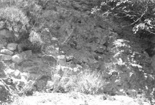 Junto al costado derecho puede observarse una pared de obra, un compartimento con suelo arcilloso donde se inicia un canalillo que no tiene continuidad. Más adelante hay un pequeño hueco con las paredes laterales lavadas con mortero. También un posible hogar, más alejado.