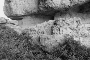 En el castillo se inicia una estrecha cornisa que ronda un metro de anchura en dirección E. Circunvala el mallo hasta un grupo de celdas, permaneciendo parcialmente los muros de cierre. Estas celdas pueden permanecer a un foco eremítico antiguo o bien tratarse de auténticas celdas de cárcel.