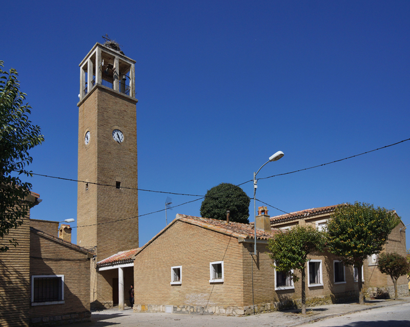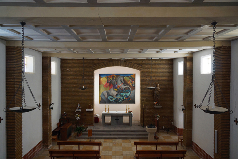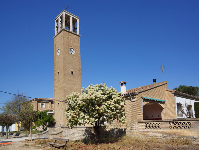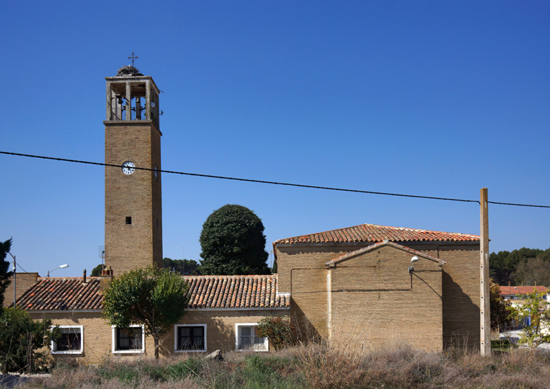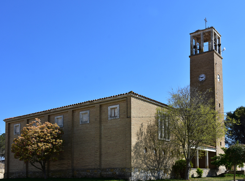 Al igual que las iglesias delos cercanos pueblos creados por el Instituto Nacional de Colonización, El Temple y Valsalada, con el arquitecto José Borobio Ojeda como director, está construida en ladrillo sobre zócalo de piedra.