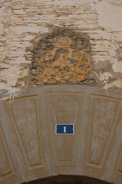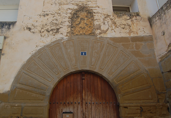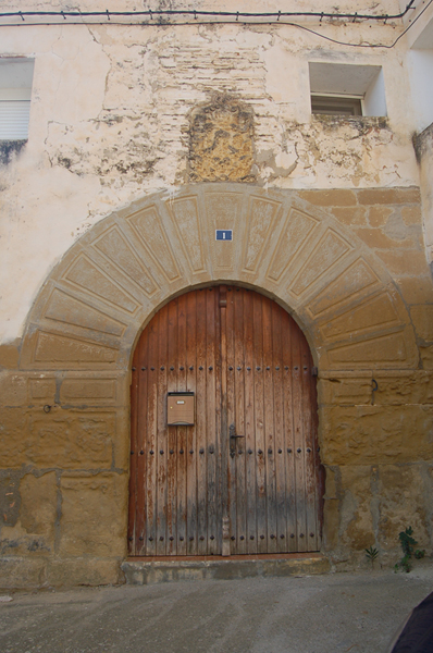 La entrada principal de la casa conserva un gran arco de medio punto formado por dovelas cajeadas con acanaladura de sección rectangular que recorre todo su contorno. En la clave del arco se lee la inscripción AÑO 1748. JOSEPH LUESIA envuelta en una orla en forma de cordón sogueado.