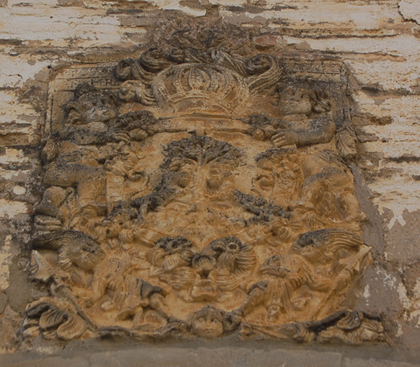 El escudo nobiliario de los Luesia se encuentra sobre la clave del arco y a pesar de su mal estado de conservación todavía resulta visible el árbol coronado por una cruz de Sobrarbe y el tronco flanqueado por dos leones rampantes. En la parte superior del escudo aparece una leyenda ilegible.