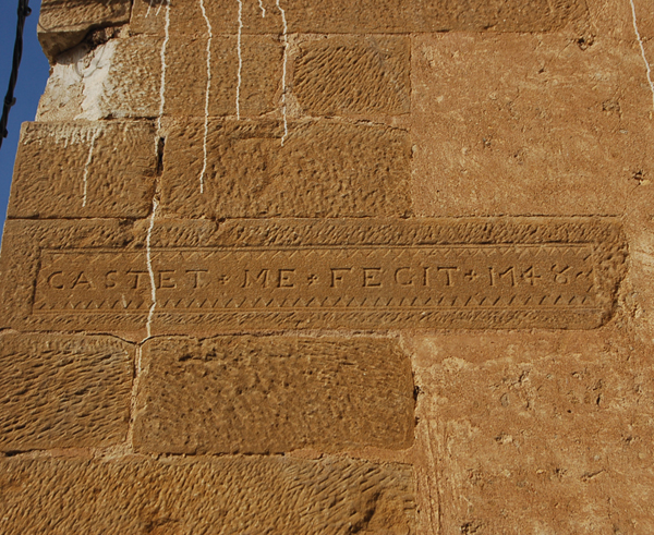 En otra de las casas de Velillas, la casa Villacampa, en la actualidad desaparecida, también existía una inscripción del mismo constructor o cantero en la que se leía AÑO 1753 CASTET ME FECIT.