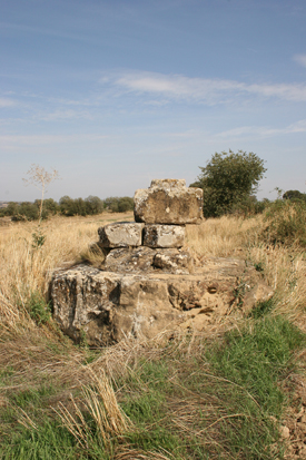Se conserva únicamente el basamento, una gran piedra cuadrangular, y el arranque del fuste. Este era también cuadrangular, realizado con sillarejos de labra tosca.