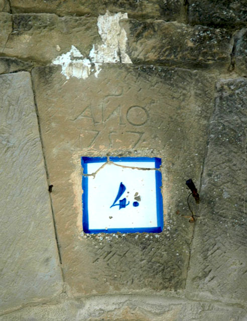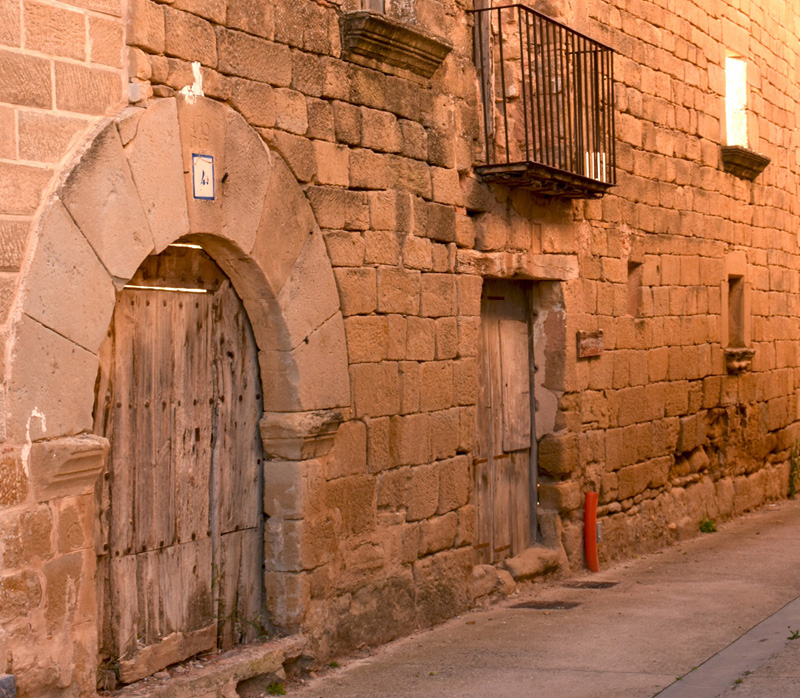 La puerta original, actualmente tapiada, es un vano en arco de medio punto, sin ningún tipo de decoración, con una inscripción en la clave donde consta la fecha de 1757. Junto a ella se abre una segunda puerta, adintelada y de menor tamaño.