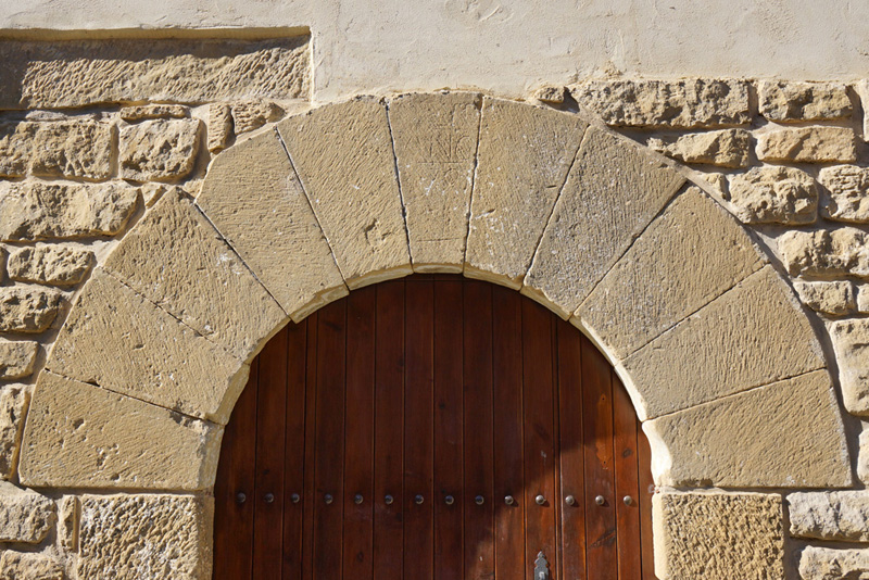 En la parte central de la planta baja se encuentra la puerta, que es el único vano original que se conserva sin modificaciones. Es un arco de medio punto cuyas dovelas van aumentando en anchura a partir de una clave central más estrecha, en la que consta una inscripción muy borrosa donde puede leerse “AÑO 781”; apea en jambas de piedra labrada compuestas por tres piezas: dos sillares cúbicos en los extremos y un largo sillar dispuesto verticalmente en la parte central.