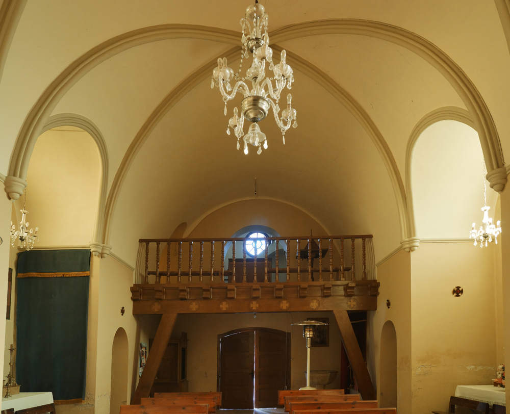 Al interior la nave única está dividida en cuatro tramos correspondientes al coro, en los pies, el altar mayor, en la cabecera, y, por último, los centrales, que tienen dos capillas a cada lado abiertas en arco de medio punto y separadas por pilares.