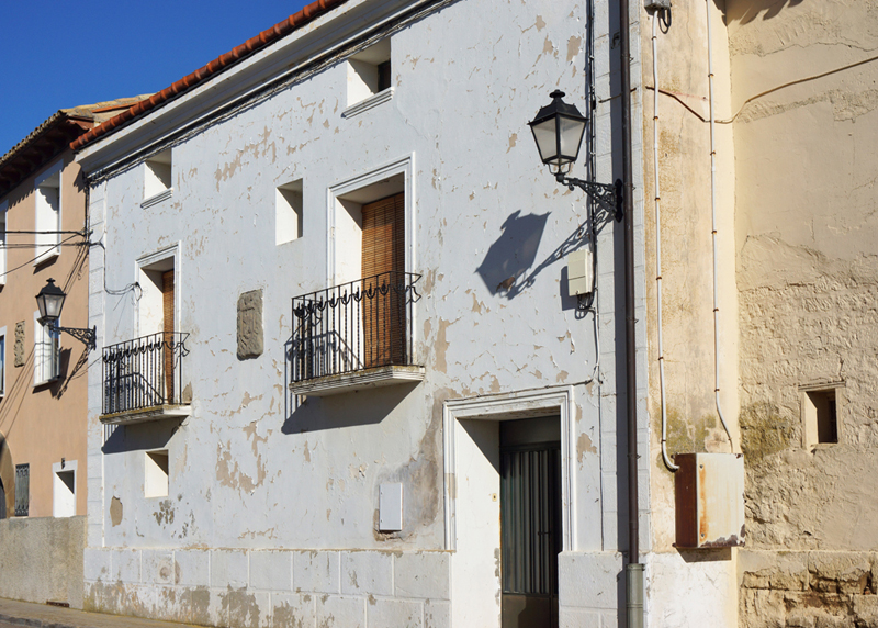 Casa de tres plantas y tres cuerpos, muy modificada, que conserva un escudo de arenisca bastante erosionada.