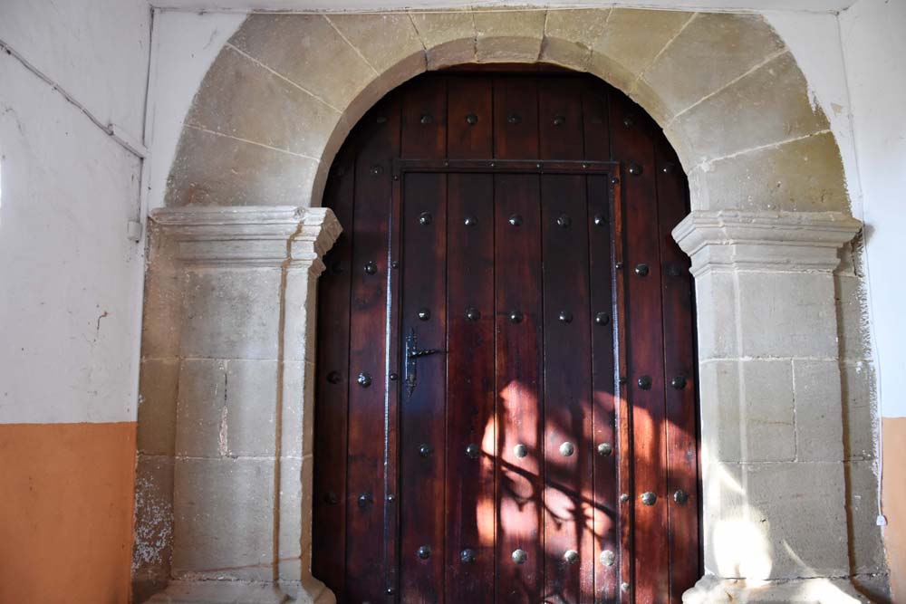 La portada de la iglesia es un vano en arco de medio punto, cuya parte superior queda cubierta por el cielorraso del atrio. Apea en salmeres moldurados y pilastras relativamente resaltadas sobre las jambas.