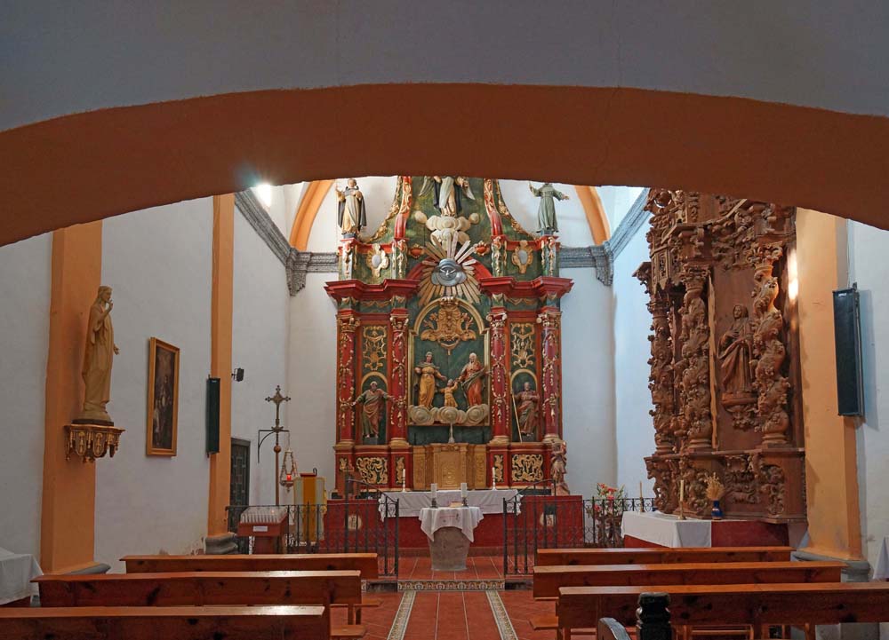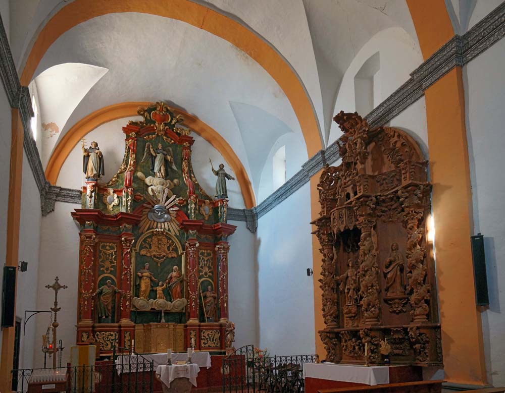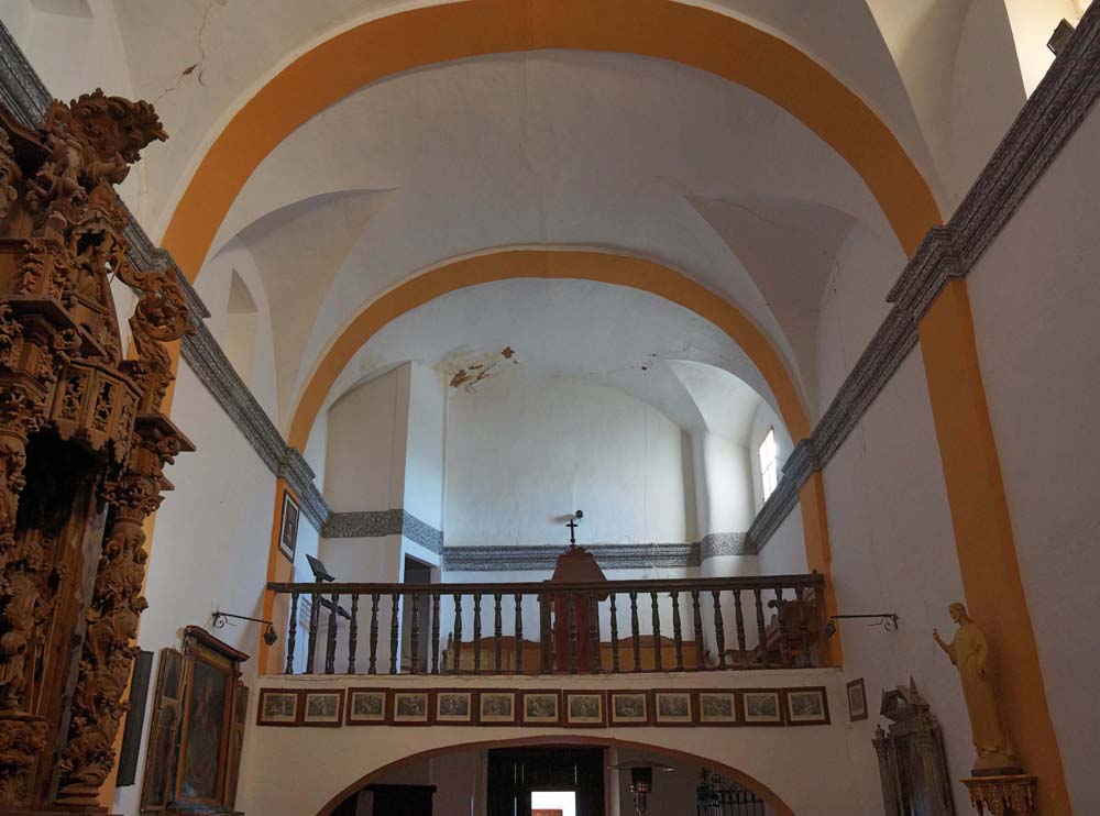 Tiene coro alto a los pies, con frente en arco escarzano y cierre de balaustres torneados. En él se encuentra el acceso a la torre.