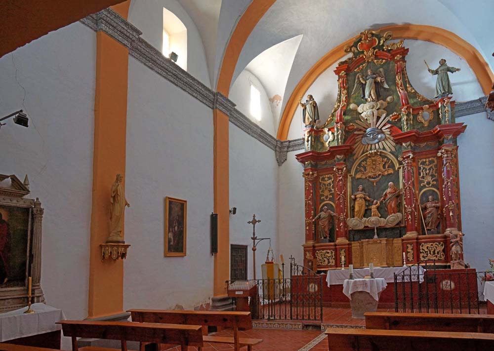 Al interior, la nave única está dividida en tres tramos por arcos fajones de medio punto, que apean sobre pilastras. Tanto la cabecera como la nave se cubren con bóveda de cañón con lunetos, que arranca de un entablamento con molduras escalonadas.