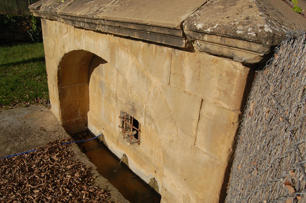 Hasta hace unas décadas compartía espacio con el tradicional abrevadero y lavadero que fue desmontado para construir la piscina pública. La caja de depósito para la decantación del agua, que se sitúa tras la fuente.