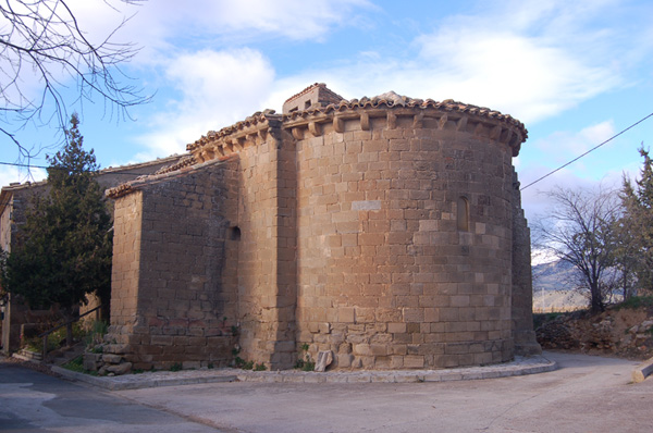 Iglesia románica de finales del XII o principios del XIII. La entrada fue rehecha a principios del siglo XVII al igual que la colocación de los contrafuertes y el añadido de las capillas laterales.