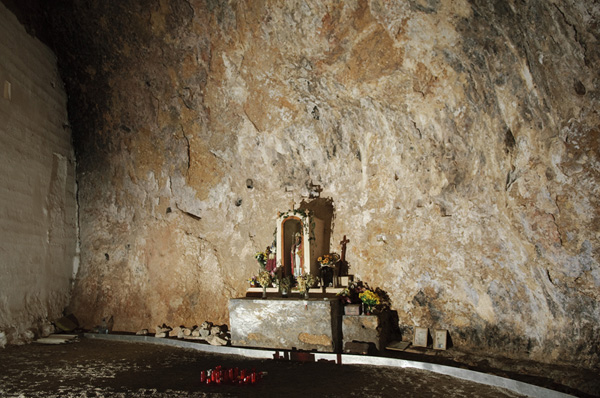 El edificio que vemos en la actualidad está construido en mampostería, con puerta en arco de medio punto y se encuentra reforzado por tres contrafuertes exteriores. No tiene cubierta a excepción de la zona destinada al hogar de la planta inferior sobre la que se dispone un pequeño campanario con espadaña con dos ojos de medio punto para albergar las campanas. El frente de la cueva está protegido por un muro de sillarejo en el que se abre la puerta y tres ventanas. El recinto interior de la cueva tenía dos plantas y contaba con coro, celdas, comedor y dormitorios. En la actualidad únicamente se mantiene un sencillo altar y la fuente.